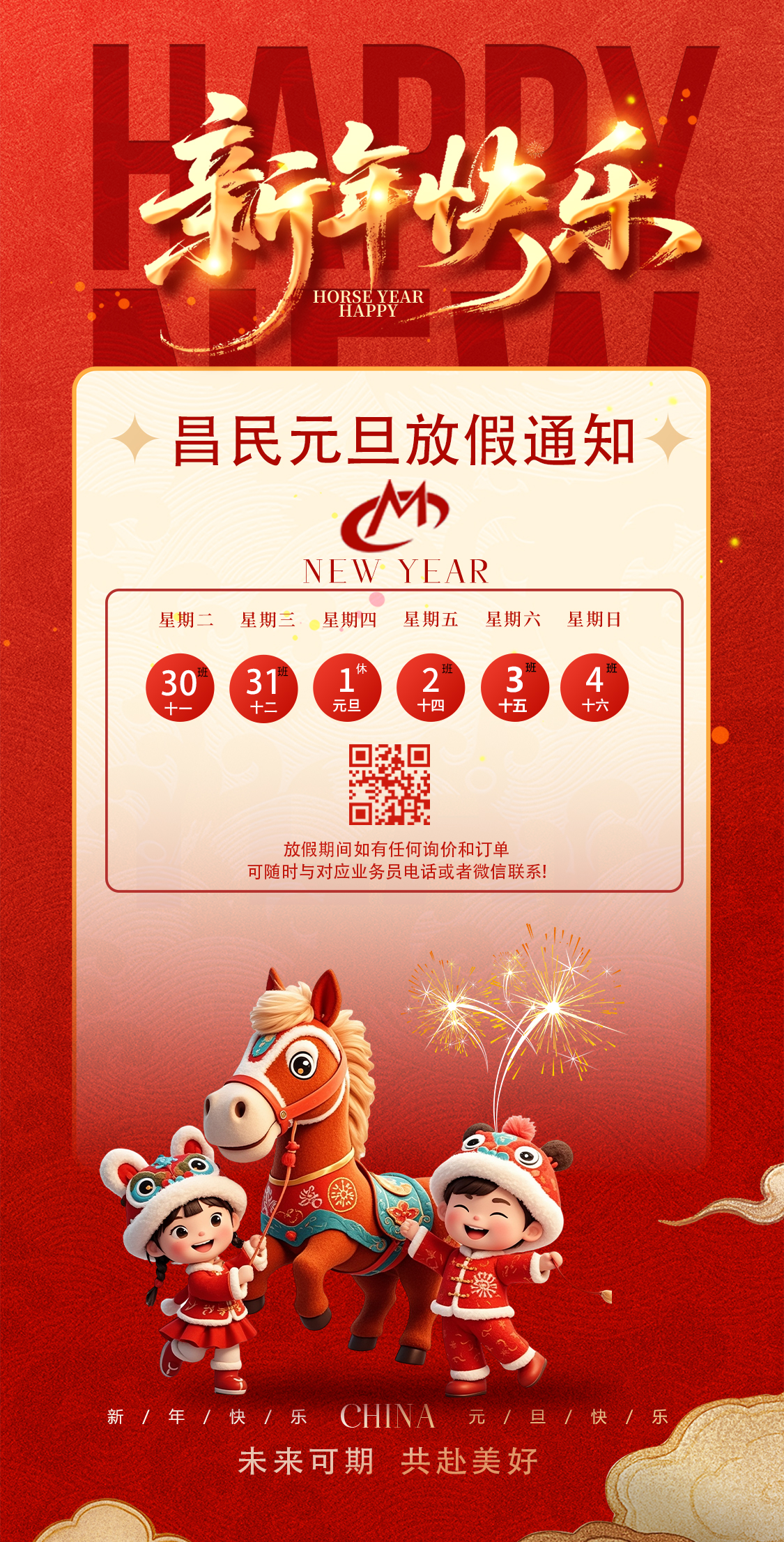 值此元旦佳节来临之际,为使大家度过一个平安祥和的假期,根据国家法定节假日安排,结合公司实际情况,我司元旦放假事宜安排如下:2026年1月1日(星期四)共1天,2026年1月2日(星期五)正常上班。在2025年感谢您的信任与支持,让我们携手走过不凡的一年!您的每一次选择,都是我们前进的动力;2026 年,我们将以更优质的产品和服务,与您并肩作战,深化合作,共创双赢,再攀高峰!在此,华体会体育平台-华体会(中国) 预祝大家元旦快乐、阖家幸福、万事顺遂!